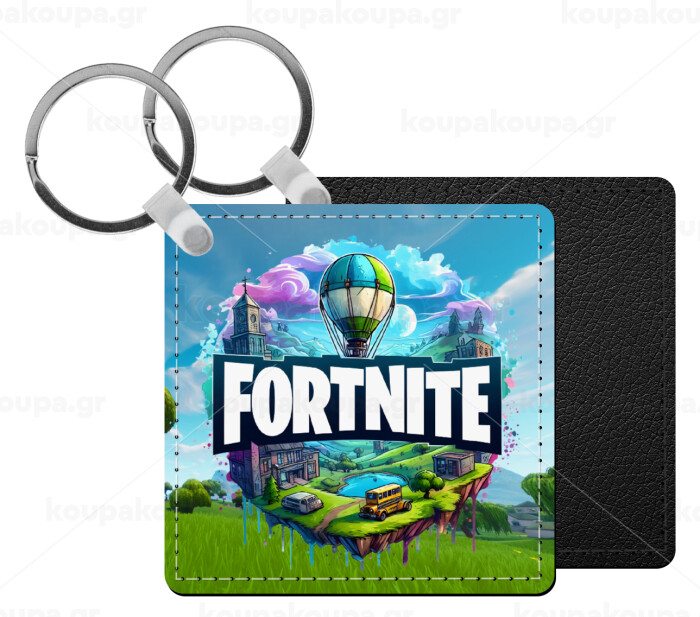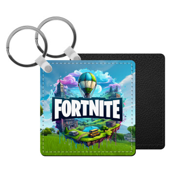 Fortnite land, Μπρελόκ Δερματίνη, τετράγωνο ΜΑΥΡΟ (5x5cm)