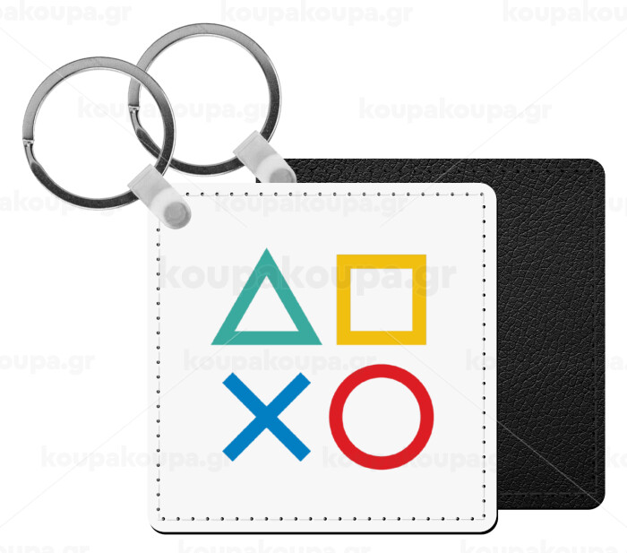 Gaming Symbols, Μπρελόκ Δερματίνη, τετράγωνο ΜΑΥΡΟ (5x5cm)
