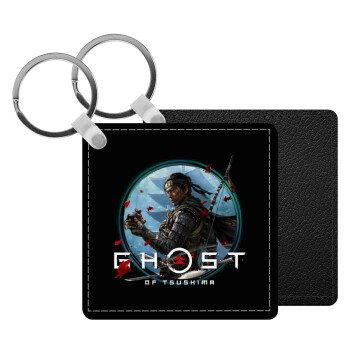 Ghost of Tsushima, Μπρελόκ Δερματίνη, τετράγωνο ΜΑΥΡΟ (5x5cm)