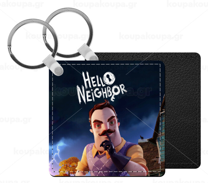 Hello Neighbor, Μπρελόκ Δερματίνη, τετράγωνο ΜΑΥΡΟ (5x5cm)