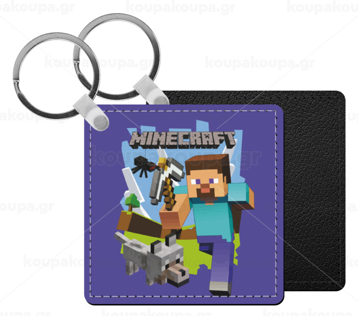 Minecraft Alex, Μπρελόκ Δερματίνη, τετράγωνο ΜΑΥΡΟ (5x5cm)