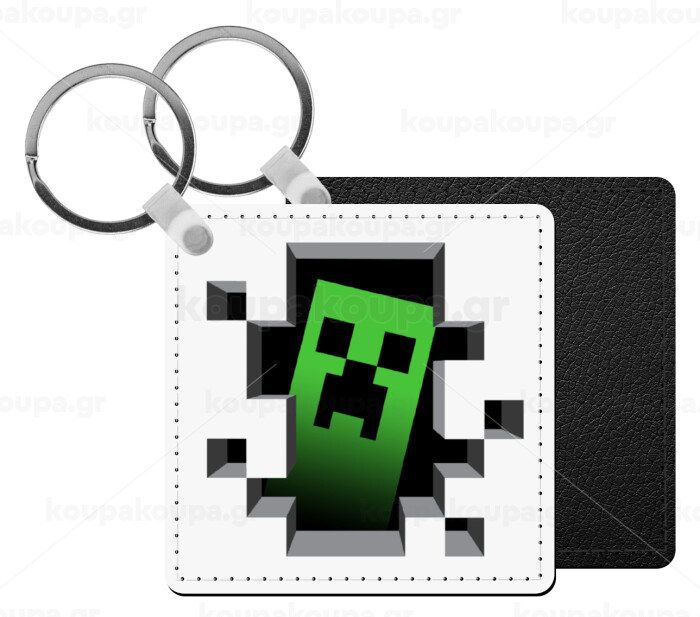 Minecraft creeper, Μπρελόκ Δερματίνη, τετράγωνο ΜΑΥΡΟ (5x5cm)