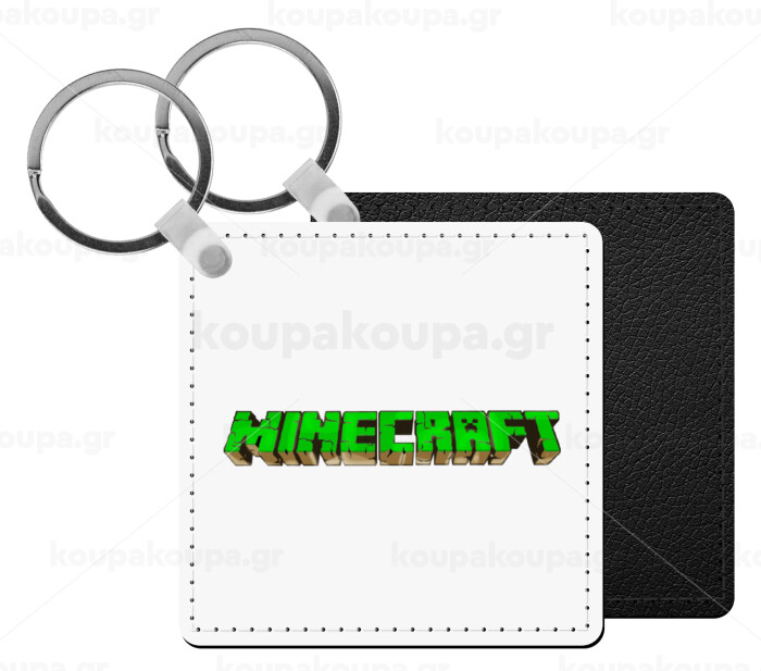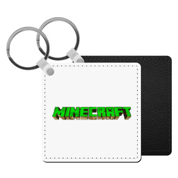 Minecraft logo green, Μπρελόκ Δερματίνη, τετράγωνο ΜΑΥΡΟ (5x5cm)