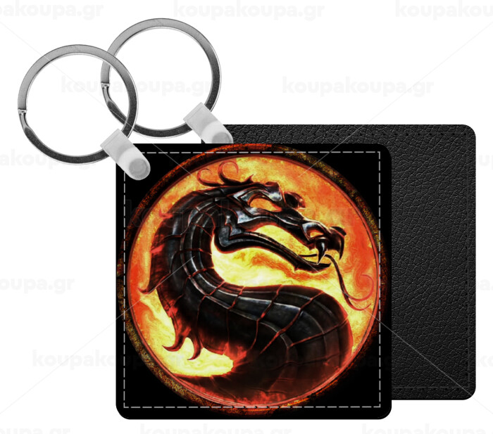 Mortal Kombat, Μπρελόκ Δερματίνη, τετράγωνο ΜΑΥΡΟ (5x5cm)