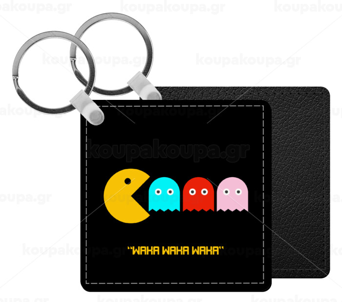 Pacman waka waka waka, Μπρελόκ Δερματίνη, τετράγωνο ΜΑΥΡΟ (5x5cm)