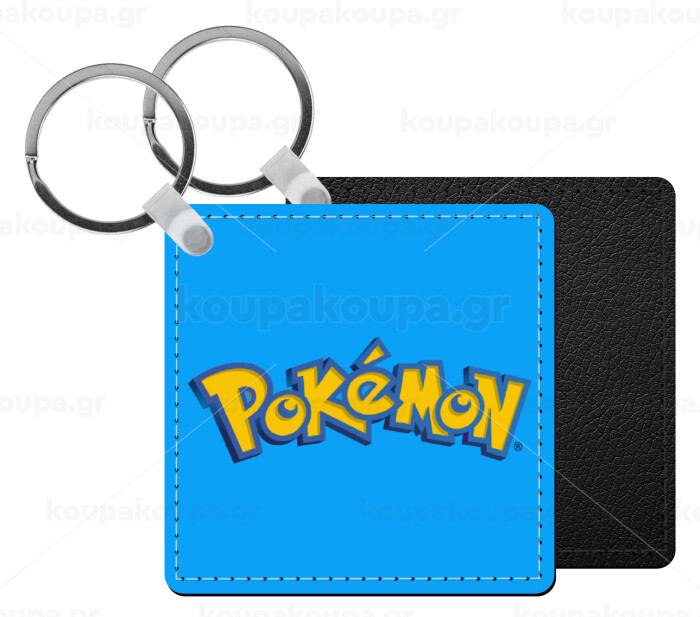 Pokemon, Μπρελόκ Δερματίνη, τετράγωνο ΜΑΥΡΟ (5x5cm)