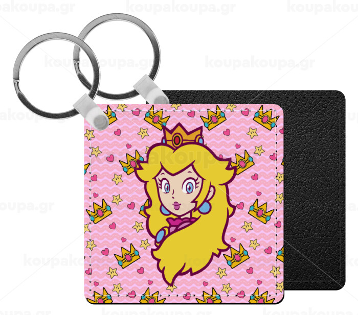 Princess Peach, Μπρελόκ Δερματίνη, τετράγωνο ΜΑΥΡΟ (5x5cm)