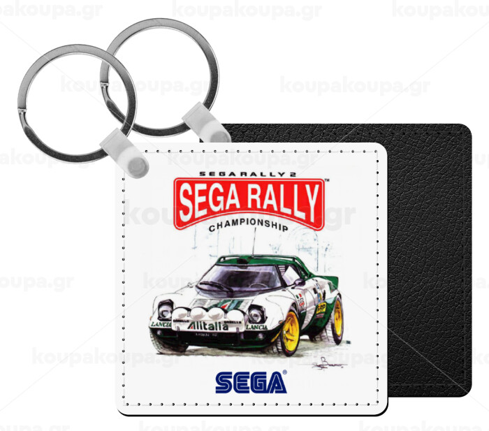 SEGA RALLY 2, Μπρελόκ Δερματίνη, τετράγωνο ΜΑΥΡΟ (5x5cm)
