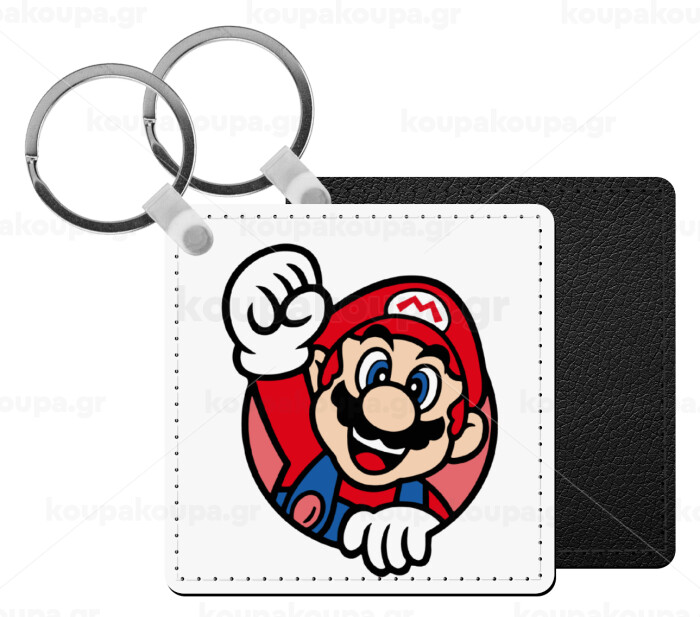 Super mario win, Μπρελόκ Δερματίνη, τετράγωνο ΜΑΥΡΟ (5x5cm)