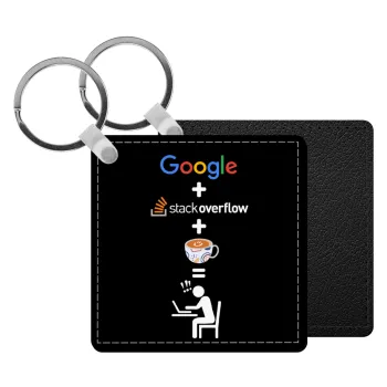Google + Stack overflow + Coffee, Μπρελόκ Δερματίνη, τετράγωνο ΜΑΥΡΟ (5x5cm)
