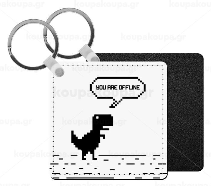 You are offline dinosaur, Μπρελόκ Δερματίνη, τετράγωνο ΜΑΥΡΟ (5x5cm)