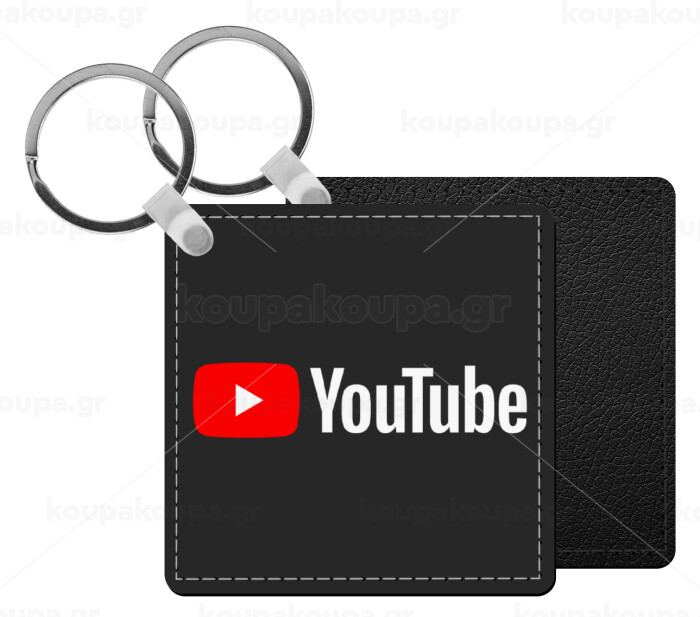 Youtube, Μπρελόκ Δερματίνη, τετράγωνο ΜΑΥΡΟ (5x5cm)
