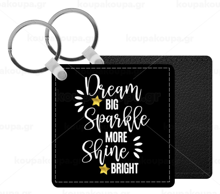 Dream big, Sparkle more, Shine bright, Μπρελόκ Δερματίνη, τετράγωνο ΜΑΥΡΟ (5x5cm)