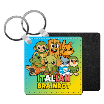 Italian Brainrot friends, Μπρελόκ Δερματίνη, τετράγωνο ΜΑΥΡΟ (5x5cm)