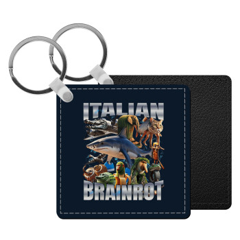 Italian Brainrot, Μπρελόκ Δερματίνη, τετράγωνο ΜΑΥΡΟ (5x5cm)
