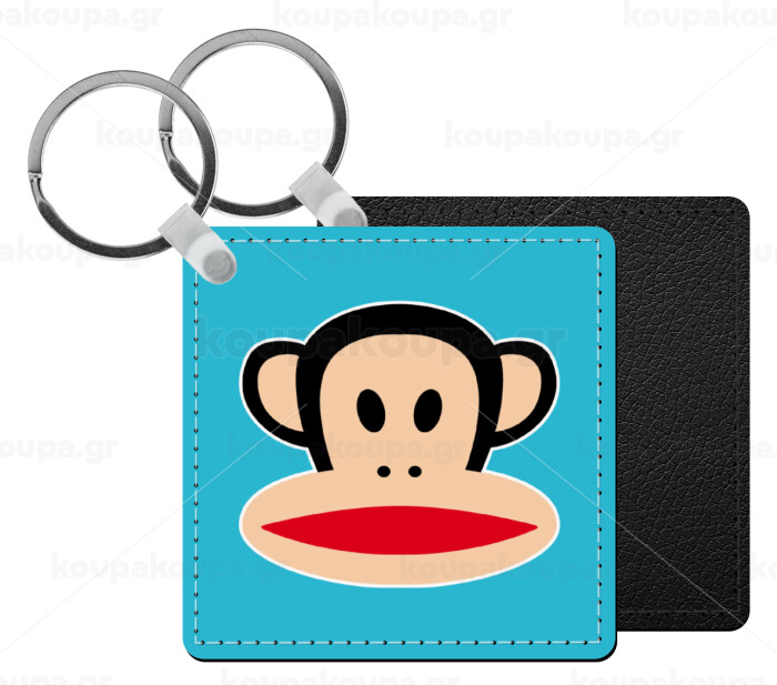 Monkey, Μπρελόκ Δερματίνη, τετράγωνο ΜΑΥΡΟ (5x5cm)