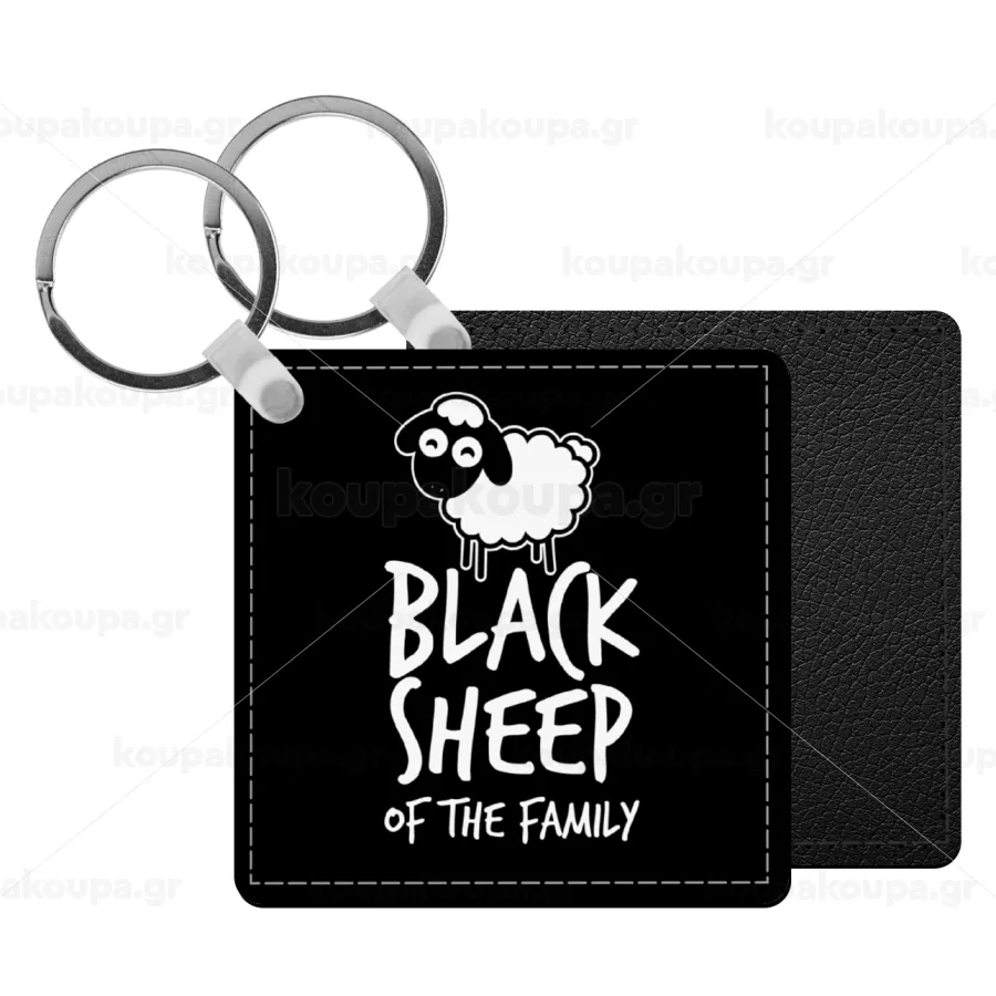Black Sheep of the Family, Μπρελόκ Δερματίνη, τετράγωνο ΜΑΥΡΟ (5x5cm)