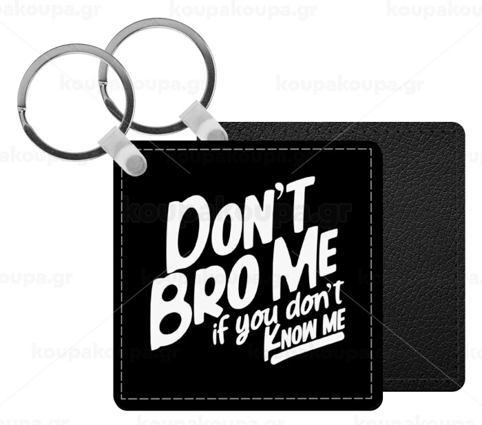 Dont't bro me, if you don't know me., Μπρελόκ Δερματίνη, τετράγωνο ΜΑΥΡΟ (5x5cm)