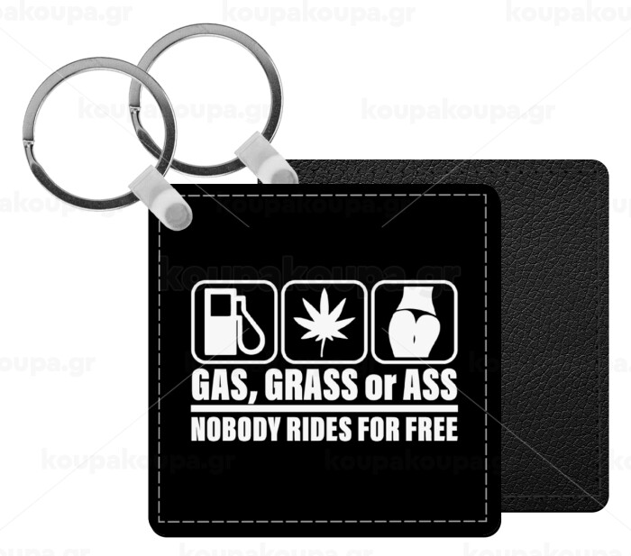 Gas, Grass or Ass, Μπρελόκ Δερματίνη, τετράγωνο ΜΑΥΡΟ (5x5cm)