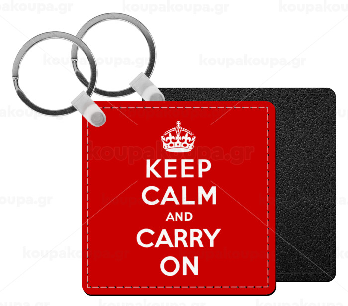 KEEP CALM and carry on, Μπρελόκ Δερματίνη, τετράγωνο ΜΑΥΡΟ (5x5cm)