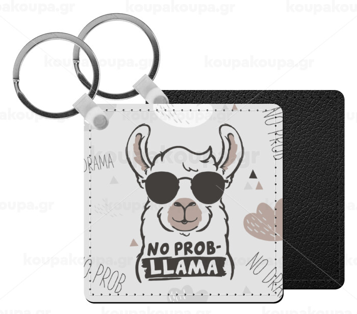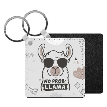 No Prob Llama, Μπρελόκ Δερματίνη, τετράγωνο ΜΑΥΡΟ (5x5cm)