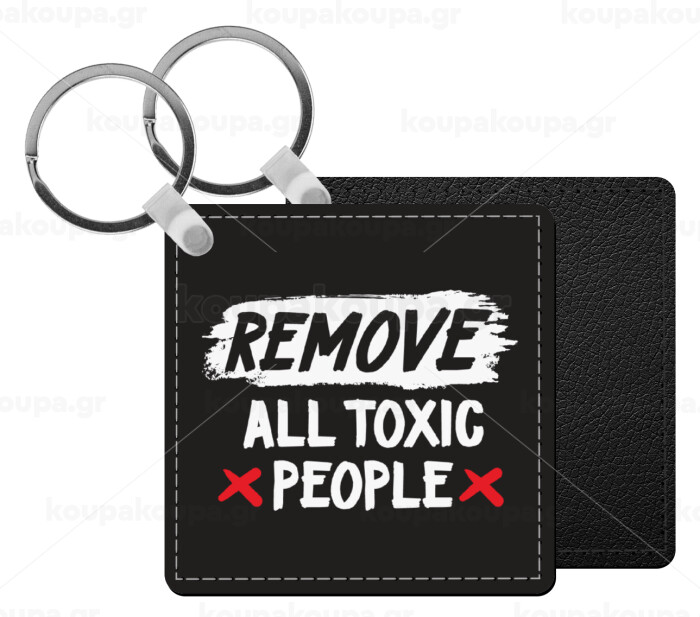 Remove all toxic people, Μπρελόκ Δερματίνη, τετράγωνο ΜΑΥΡΟ (5x5cm)