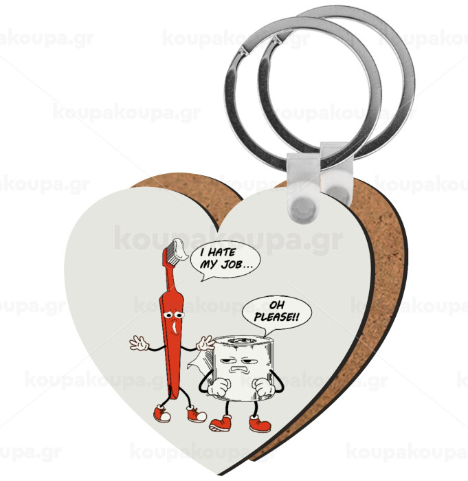 I hate my job, Μπρελόκ Ξύλινο καρδιά MDF