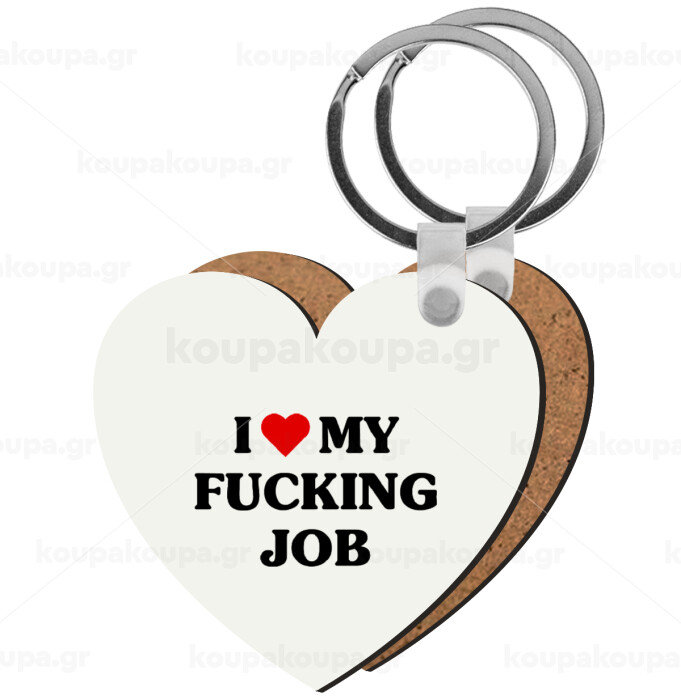 I love my fucking job, Μπρελόκ Ξύλινο καρδιά MDF