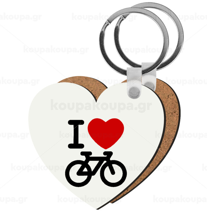 I love Bike, Μπρελόκ Ξύλινο καρδιά MDF