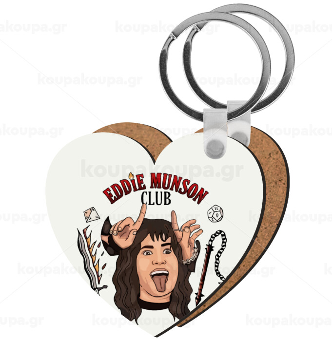 Eddie Munson, Hellfire CLub, Stranger Things, Μπρελόκ Ξύλινο καρδιά MDF