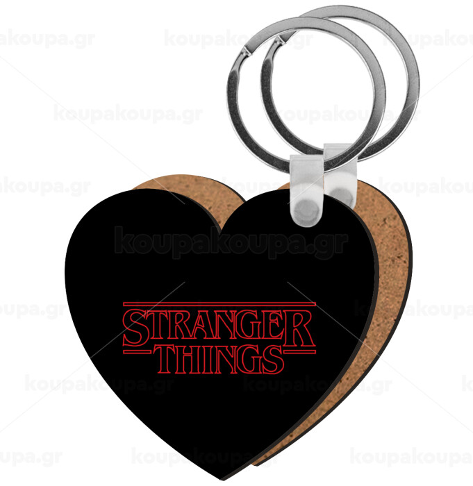 Stranger Things Logo, Μπρελόκ Ξύλινο καρδιά MDF