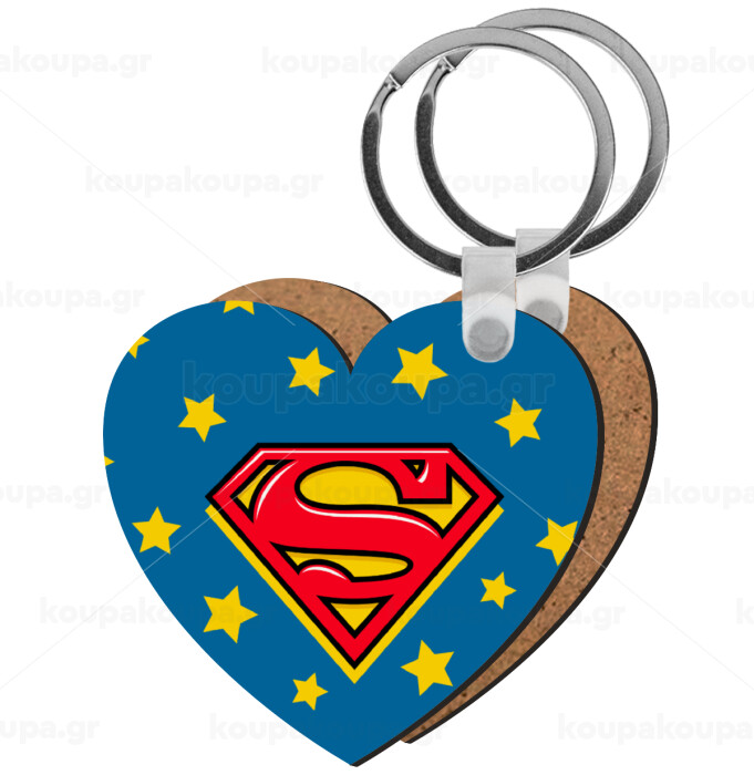 Superman Blue, Μπρελόκ Ξύλινο καρδιά MDF