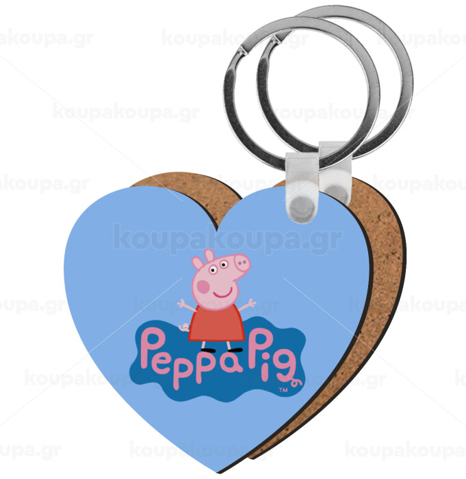 Πέππα το γουρουνάκι μπλε με όνομα, Μπρελόκ Ξύλινο καρδιά MDF