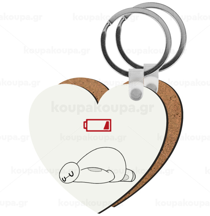 Baymax battery low, Μπρελόκ Ξύλινο καρδιά MDF