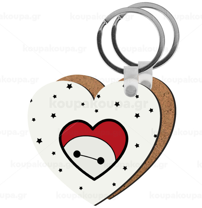 Baymax heart, Μπρελόκ Ξύλινο καρδιά MDF