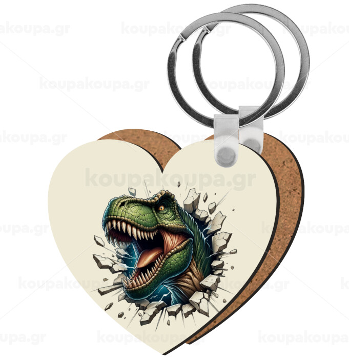 Dinosaur break wall, Μπρελόκ Ξύλινο καρδιά MDF
