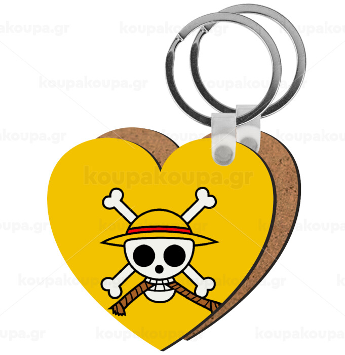 Onepiece skull, Μπρελόκ Ξύλινο καρδιά MDF