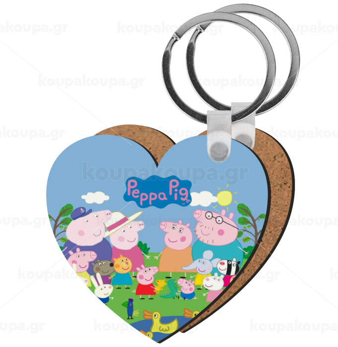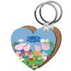 Peppa pig Family, Μπρελόκ Ξύλινο καρδιά MDF