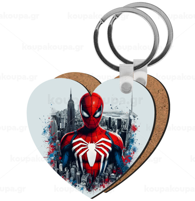 Spiderman City, Μπρελόκ Ξύλινο καρδιά MDF