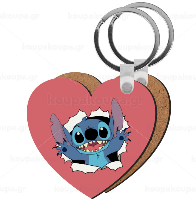 Stitch hello!!!, Μπρελόκ Ξύλινο καρδιά MDF
