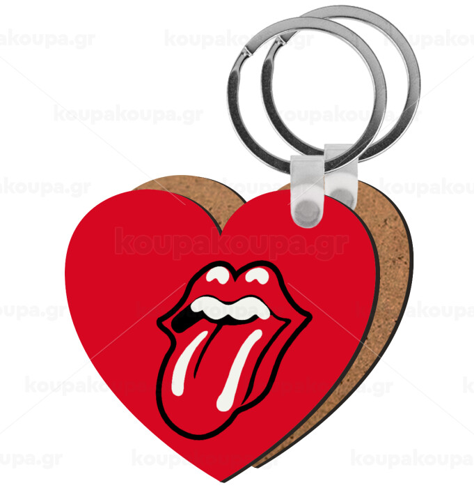 Rolling Stones Kiss, Μπρελόκ Ξύλινο καρδιά MDF