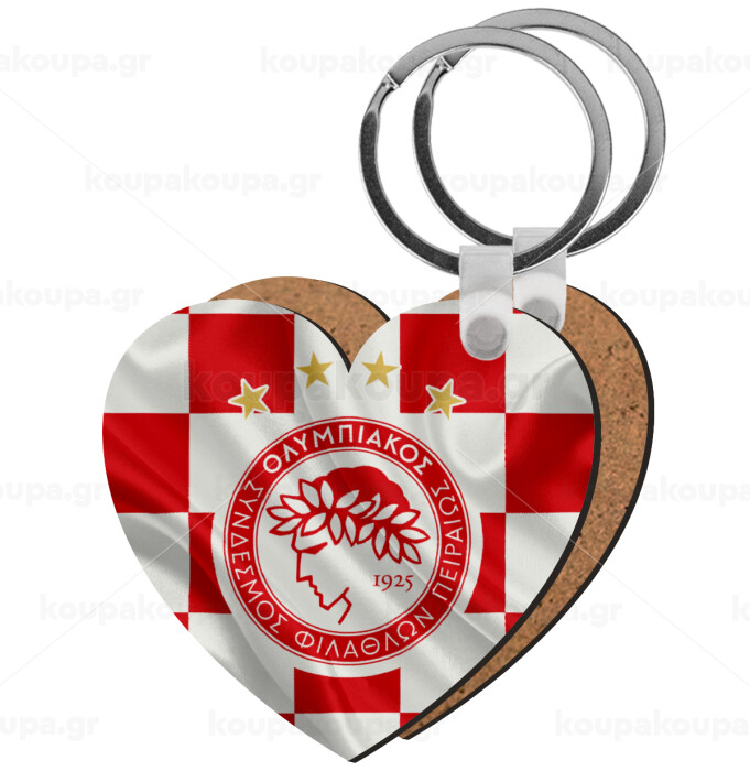 Olympiakos flag, Μπρελόκ Ξύλινο καρδιά MDF