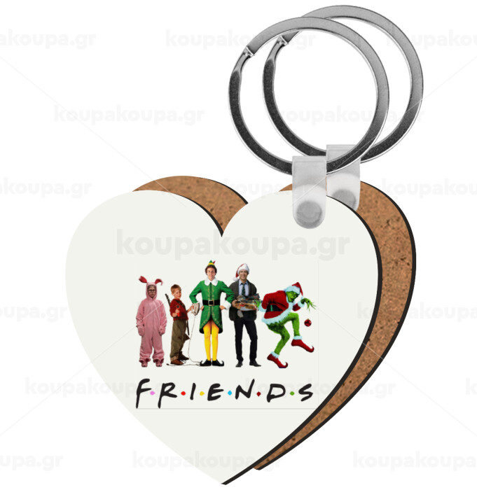 Christmas FRIENDS, Μπρελόκ Ξύλινο καρδιά MDF