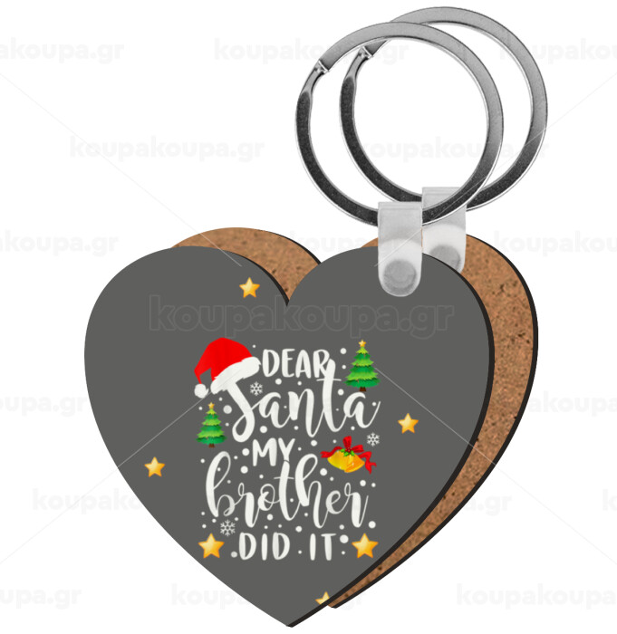Dear santa my Brother did it, Μπρελόκ Ξύλινο καρδιά MDF