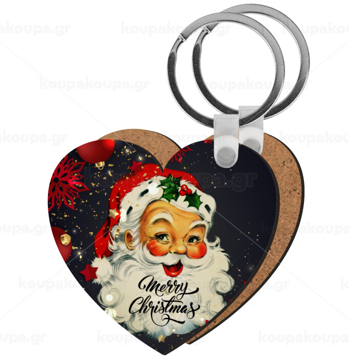 Santa vintage, Μπρελόκ Ξύλινο καρδιά MDF