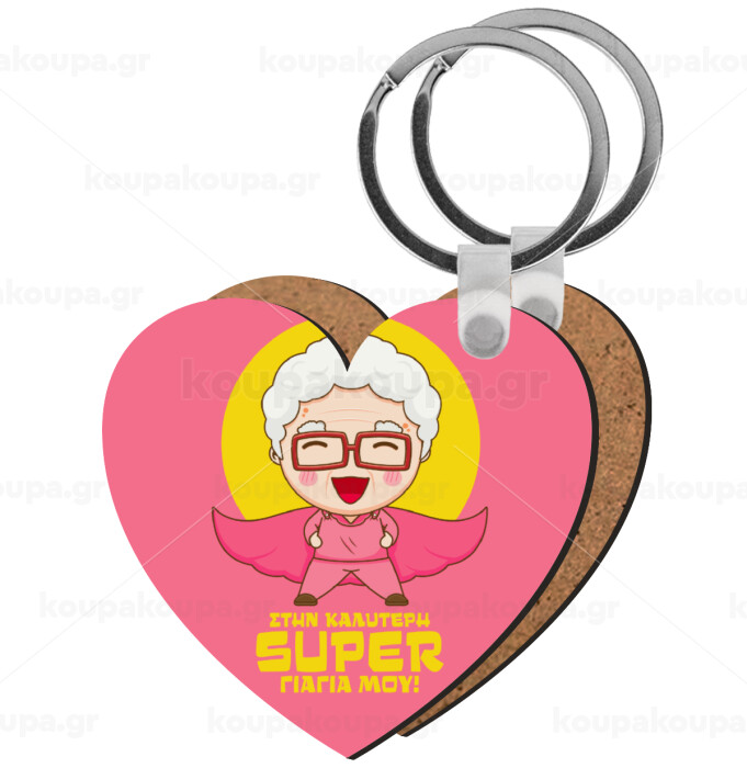 To my best Super Grandma!, Μπρελόκ Ξύλινο καρδιά MDF