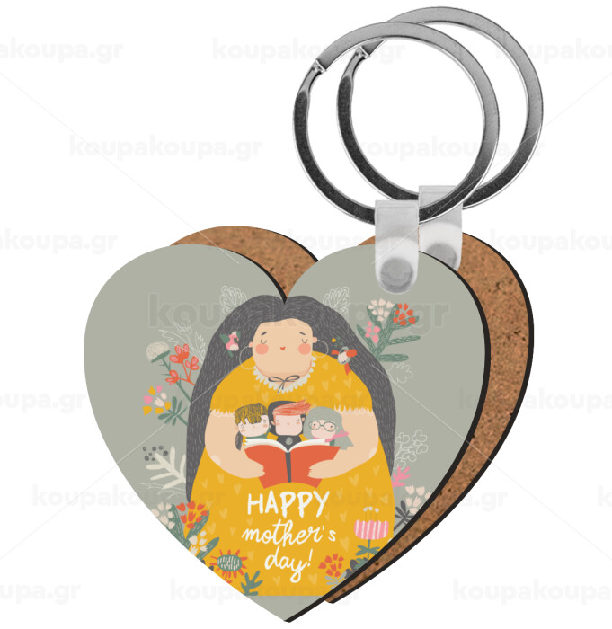 Cute mother reading book, happy mothers day, Μπρελόκ Ξύλινο καρδιά MDF