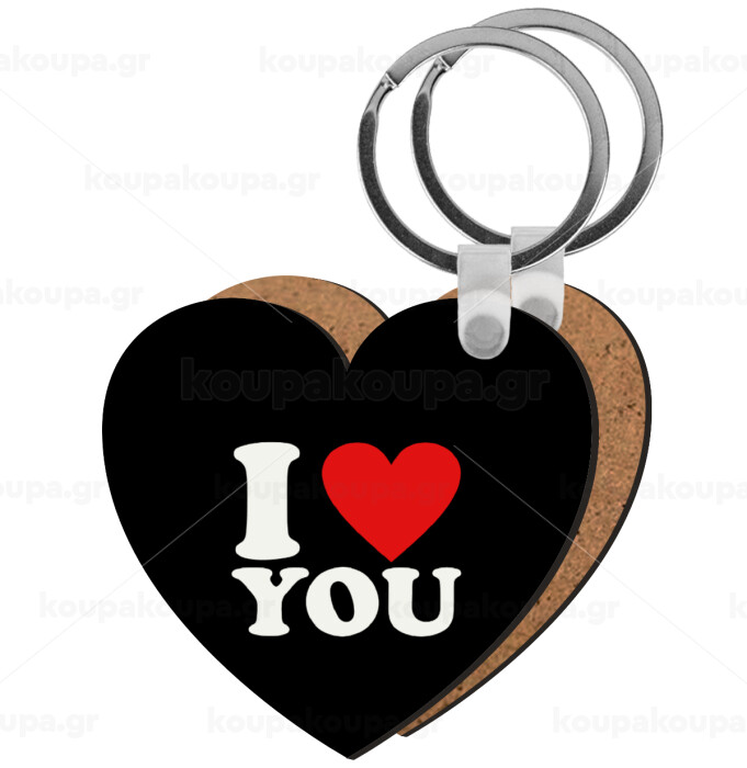 I LOVE YOU, Μπρελόκ Ξύλινο καρδιά MDF
