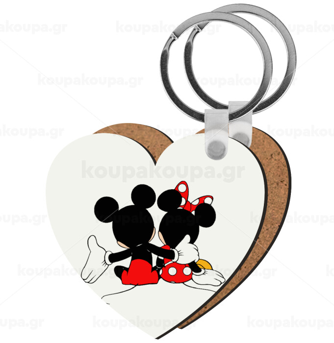 mickey and minnie hags, Μπρελόκ Ξύλινο καρδιά MDF