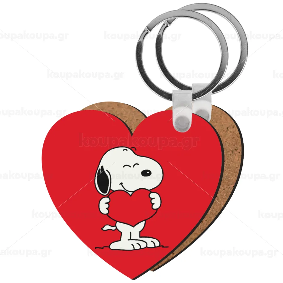 Snoopy takemy heart, Μπρελόκ Ξύλινο καρδιά MDF